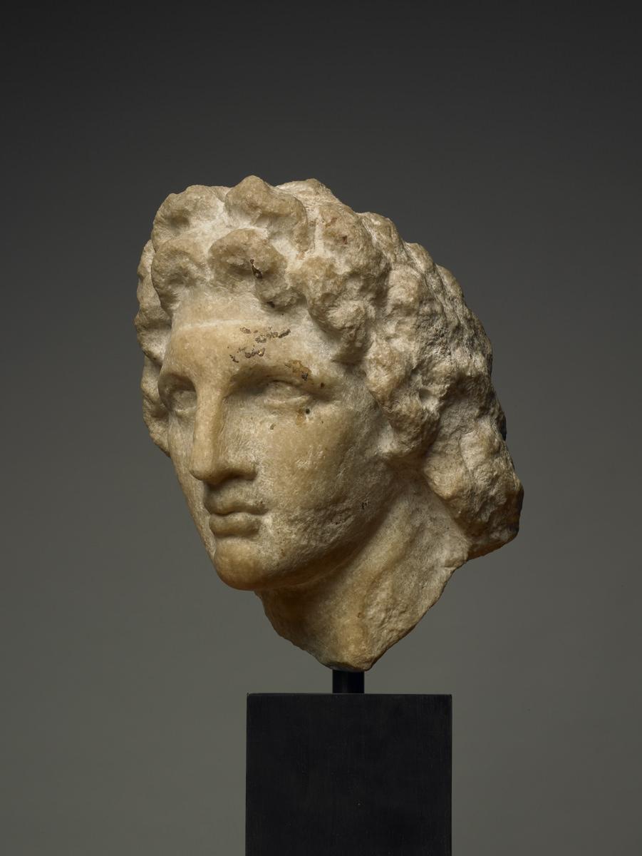 While no marble ages the same, generally Parian marble ages in such a manner to produce a distinctly orange-hued discoloration. This is possibly due to sub-surface oxalate migration or formation (Pinna 2015). Below are some pictures of discolored Parian marble. The first is a bust of Alexander. The second is Nike of Samothrace.